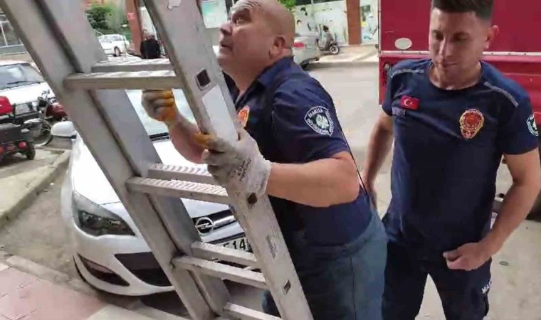 Manisa’nın Alaşehir ilçesinde yuvasından düşen kırlangıç yavrusu çevre esnafının dikkati sayesinde itfaiyenin desteğiyle yuvasına yeniden konuldu.