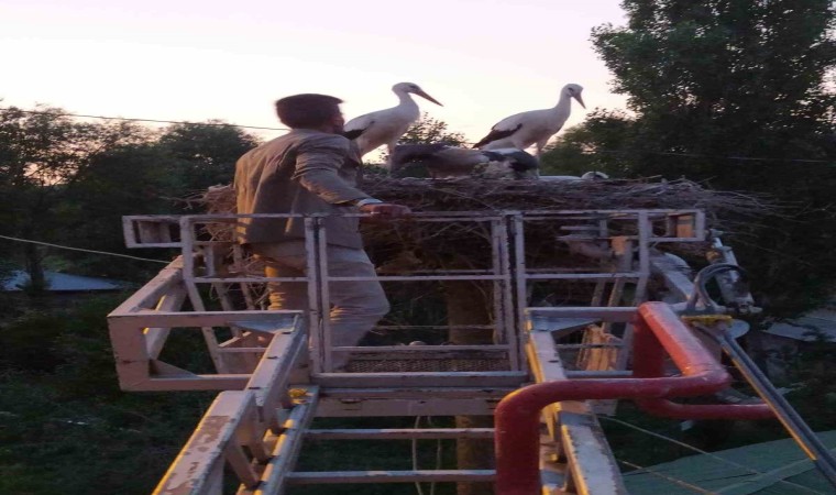 Bingöl’ün Karlıova ilçesinde yuvasından düşen yavru leylekler, itfaiye ekiplerince alınarak tekrar yuvalarına bırakıldı.