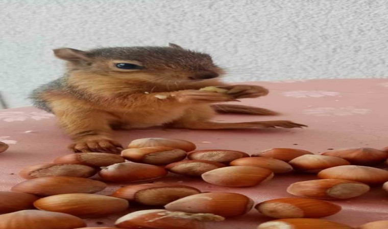Yuvasından düşerek kafa travması yaşayan yavru sincap 3 hafta önce koruma altına alındı. Sağlığı iyi durumda olan sincap, önümüzdeki günlerde doğaya salınacak.