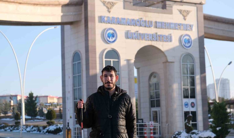 Karaman’da doğuştan yüzde 91 görme engeli bulunan 30 yaşındaki Ahmet Çabıtçı, azmiyle herkese ilham oluyor.
