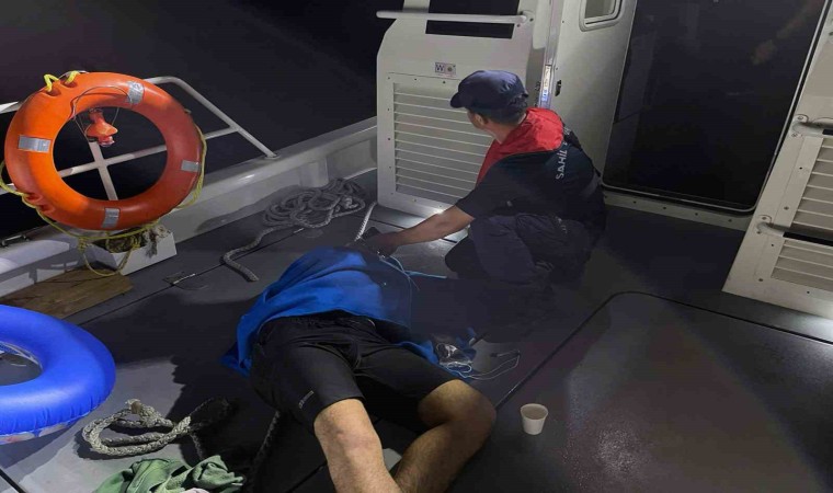 Muğla’nın Datça ilçesinde yasa dışı yollardan yüzerek Yunanistan’a geçmeye çalışan düzensiz göçmen yorulunca yardım istedi.