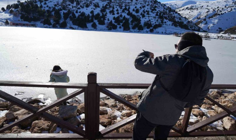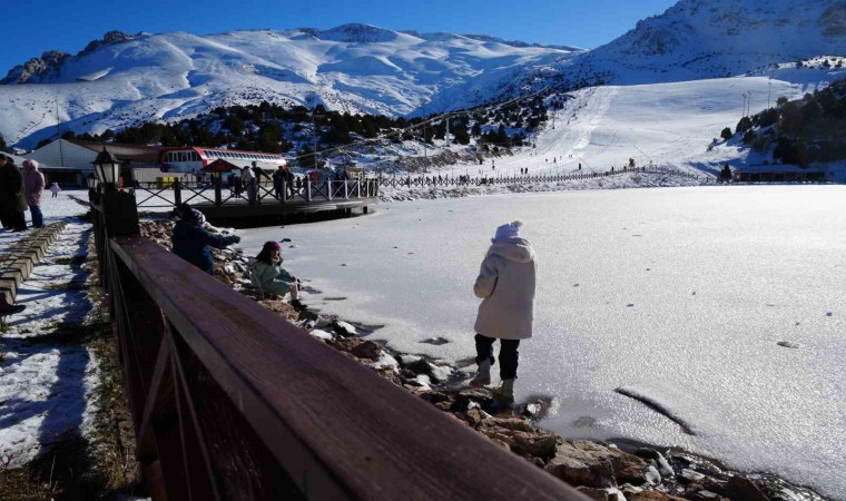 Erzincan’ın güneyindeki Munzur dağlarının eteğinde 2 bin 970 rakımda bulunan ve yüzeyi soğuk havanın etkisiyle buz tutan gölde güzel kış manzaraları oluştu. Ergan Dağı Kayak Merkezi’nin yanında bulunan göl, bölgeye gelen vatandaşların ilgisini çekiyor. Göl, fotoğraf tutkunlarının uğrak mekânı haline geldi.