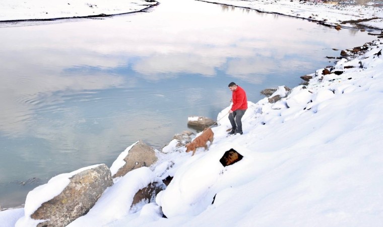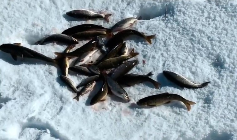 Balık avlayan vatandaşlardan Yılmaz Acar, "Bu buz gibi havada geldik, buzu kırıp balık tutmaya çalışıyoruz. Kürekler ve levyelerle buzu kırıyoruz balık çıkarıyoruz. Hava eksi 15-20 derece var şu an, yani insan donuyor. Biz geliyoruz hobi olarak balık tutuyoruz. 7-8 kilo şu an yakaladık, yani bazen oluyor bazen olmuyor. Yazın çok güzel balıklar çıkıyor ama kışın çok soğuk. Ellerimizle buzu kırıyoruz, balıkları çıkarıyoruz, ellerimiz donuyor ama yine de iyi kışın balık yağlı oluyor, lezzetli oluyor" dedi.
