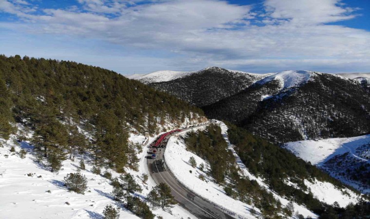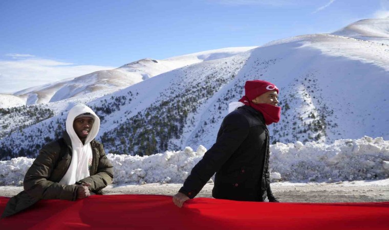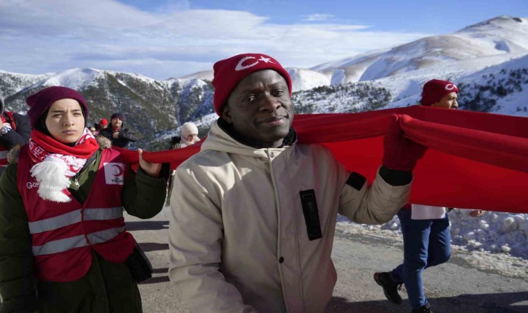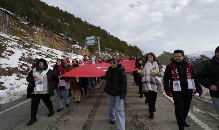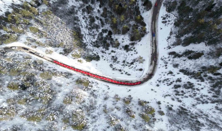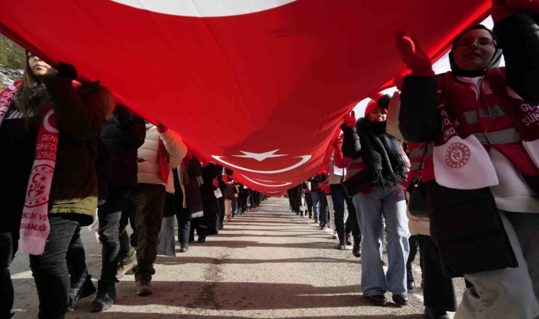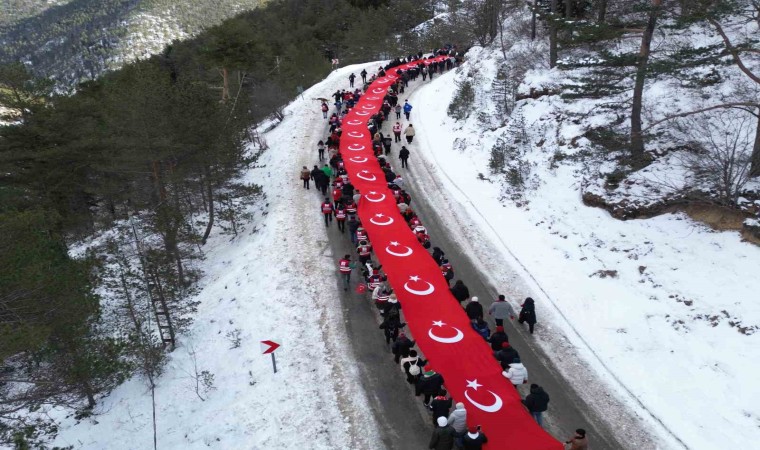 Gümüşhane’de Sarıkamış Harekâtı’nın 109. yıl dönümünde yüzlerce kişi şehitleri anmak için 100 metre uzunluğundaki Türk bayrağıyla eski Zigana Tüneli’nden başlayarak Zigana Kayak Tesisleri’ne kadar yürüdü.