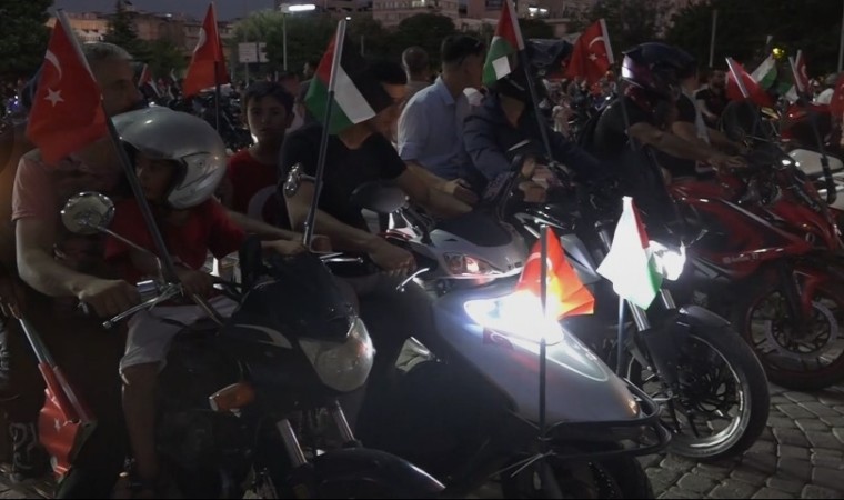 Basın açıklamasının ardından Türk ve Filistin bayrakları sallayan motosikletli grup, Filistin’e destek sloganları atarak şehir içinde tur attı. Konvoyun turu Millet Camii’nde son buldu.
