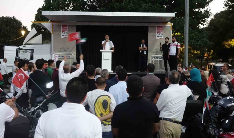 Gaziantep Kudüs Platformu ve Gaziantep Gönüllü Kuruluşlar Platformu öncülüğünde bir araya gelen vatandaşlar, İsrail’in aylardır Filistinlilere uyguladığı zulmü protesto etti. 15 Temmuz Demokrasi Meydanı’nda bir araya gelen motosiklet sürücüleri, meydanda akşam namazını cemaatle kıldı. Kur’an-ı Kerim’in okunduğu ve duaların edildiği programda katılımcılar, “Kahrolsun İsrail”, “Kahrolsun Amerika”, “Hamas’a selam, direnişe devam” ve “Nehirden denize özgür Filistin” sloganları atarak tekbir getirdi. İsrail’in Gazze başta olmak üzere Filistin’in diğer kentlerine düzenlediği saldırılarda çok sayıda Filistinlinin şehit edilmesine tepki gösteren vatandaşlar, "Kudüs bizimdir, bizim kalacak" şeklinde İsrail aleyhine slogan atıp, sık sık tekbir getirdi. Meydanda toplanan çok sayıda gönüllü motosiklet grubu ve motosiklet sürücülerine Şahinbey Belediye Başkanı Mehmet Tahmazoğlu ve siyasi partilerin temsilcileri de destek verdi.