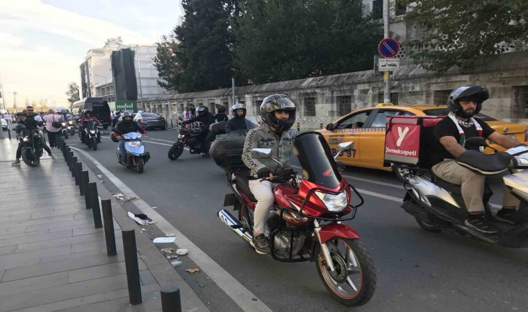 İstanbul’da motosikletli vatandaşlar, İsrail’in Gazze’ye saldırılarını protesto etmek amacıyla "İstanbul’da Filistin’e Destek Sürüşü" adlı konvoy düzenledi. Yüzlerce motosikletlinin katıldığı konvoy, Karaköy’den başlayarak Eminönü’nde son buldu.