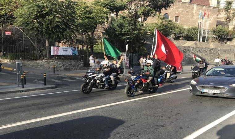 Karaköy’de toplanan çok sayıda gönüllü motosiklet grubu ve motosiklet sürücüleri Filistin’e destek konvoyu oluşturdu. Türk ve Filistin bayrakları sallayan motosikleti grup, Filistin’e destek sloganları eşliğinde Edirnekapı’ya doğru yol aldı. Ardı arkası kesilmeyen konvoy, Eminönü’nde son buldu.