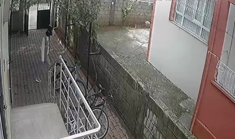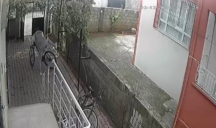 Adıyaman’da yüzü maskeli hırsızın bahçede bulunan bisikleti çalıp kaçma anı kameralara saniye saniye yansıdı.