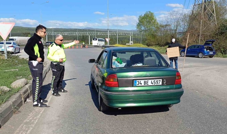 DÜZCE (İHA) – Düzce’de motokurye Ramazan Bayramı tatili için yola çıkan sürücüleri uyarmak için ilginç bir çalışmaya imza attı. Yüzüne maske takıp, eline tırpan alan kurye, TEM Otoyolu’nda polis denetimine eşlik ederek, sürücüleri uyardı.