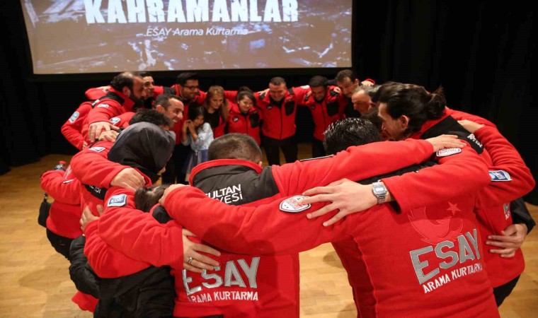 Kur’an-ı Kerim tilaveti ve depremde yaşamını yitiren vatandaşlarımız için edilen duaların ardından gösterimi yapılan “Yüzyılın Felaketinin Yıldönümünde İsimli Kahramanlar” belgeselinde depremin kahramanlarından olan ESAY ekibi, deprem bölgesinde yaşananları, umudun ve hayata yeniden tutunanların hikayelerini gözyaşları içinde anlattı.