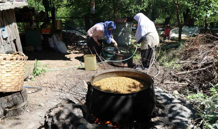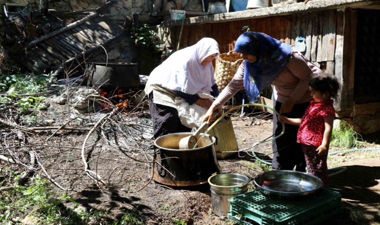 Uzun uğraşlar ile hiçbir katkı maddesi kullanılmadan hazırlanan pekmezin el becerisi gerektirdiğini anlatan Zeynep Yalçıner, "Uzun uğraş ve zahmetler sonucu el işçiliği ile tamamen doğal yollardan hiçbir katkı maddesi kullanılmadan üretilen pekmezlerimiz kış mevsiminde her derde deva olarak kullanılır. Dutlar kazanda kaynatılır, şırası elde edilir. Kaynatma işlemi uzun süre uygulanır. Kaynatma işlemi açık yayvan kaplarda yapılır ve düşük ısıda koyulaşıncaya kadar kaynatılır. Kaynatma kazanında şıra kaynamaya başlayınca oluşan köpükler kepçe ile alınır. Kaynama ilerledikçe şıranın üstü sarı köpük bağlar, şıra içten içe kızarır, göz göz olarak kaynar ve pekmez kokusunu yayar" diye konuştu.