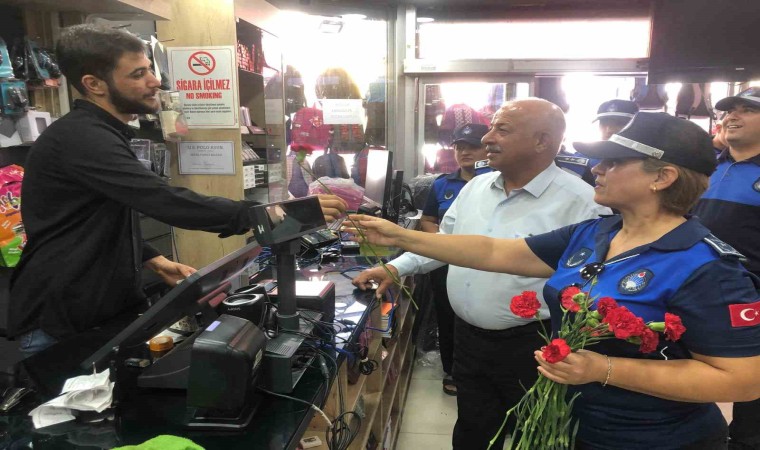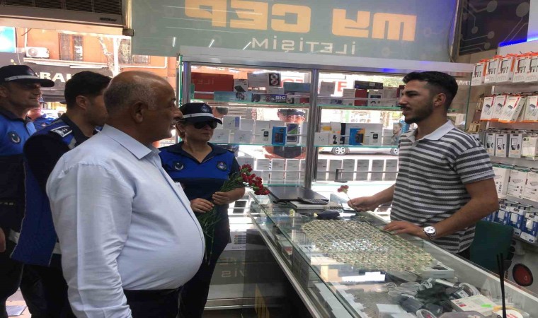 Adıyaman’da Zabıta ekipleri Zabıta Haftası çerçevesinde esnaflara ve vatandaşlara karanfil dağıttı.