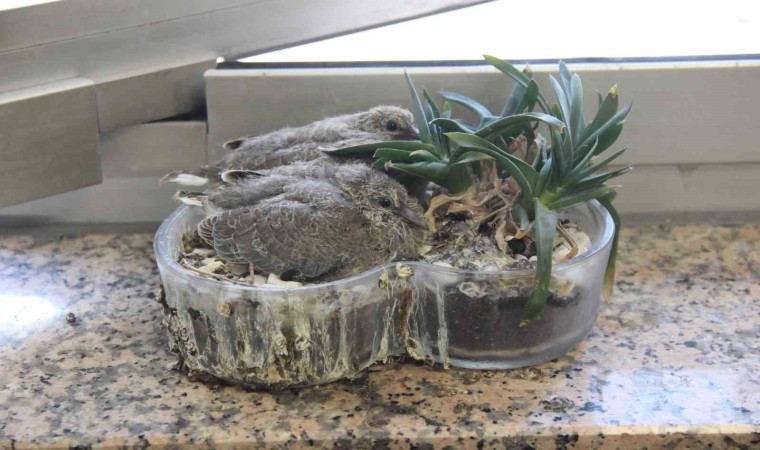 Kocaeli’nin Gölcük ilçesinde Zabıta Müdürü Erdinç Yazıcı’nın ofisindeki saksıya bir kumru yuva yaptı. İki kumru yavrusuna gözü gibi bakan Yazıcı, "Ayrıldıkları zaman üzüleceğim. İnşallah tekrardan bizi ziyarete gelirler" dedi.