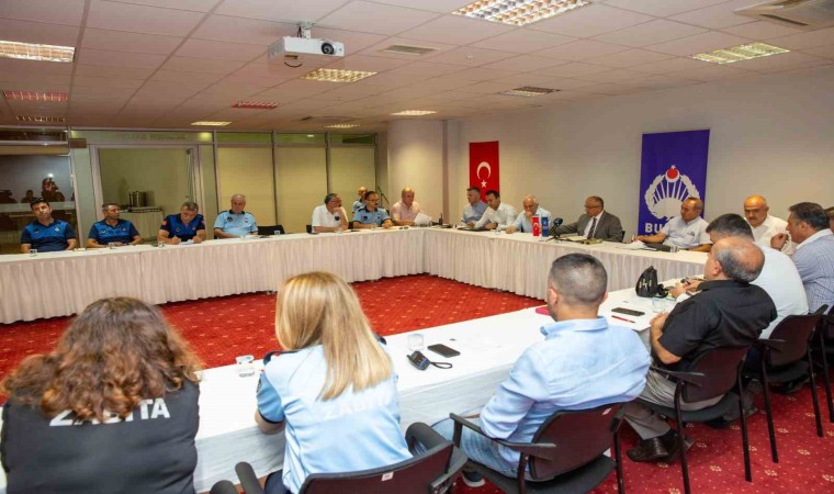 Büyükşehir Belediyesi Zabıta Daire Başkanlığı’nın koordinasyonunda Atatürk Kongre ve Kültür Merkezi’nde yapılan toplantıda, zabıta hizmetleri çerçevesinde giren sahillerdeki işgaller, hurdacılar, seyyar satıcılar, usulsüz çadırlar, işgaliye karşılığı verilen yerler, başıboş hayvanlar, hurda araçlar ile şehir içi tır, kamyon, karavan parklanmaları gibi konular ele aldı.