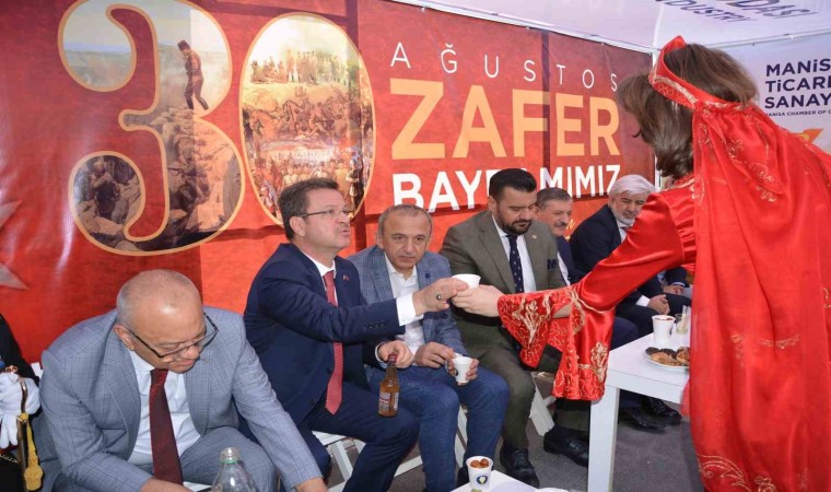 Manisa Ticaret ve Sanayi Odası, her yıl olduğu gibi bu yılda 30 Ağustos Zafer Bayramı’nda çeşitli etkinlikler düzenledi. Oda tarafından Fatih Sergi Salonunda 30 Ağustos’a özel fotoğraf sergisi düzenledi. Protokol üyeleri fotoğraf sergisini büyük bir dikkatle takip etti. Ardından Cumhuriyet Meydanı’nda stant kurdu. Manisa Ticaret ve Sanayi Odası Başkanı Mehmet Yılmaz, Vali Enver Ünlü ve protokol üyelerini bu stantta ağırladı. Üzüm suyu, üzüm şırası, şerbetli lokma ikram edildi. Manisa TSO, hem Cumhuriyet Meydanı’nda hem de Hükümet Konağı önünde vatandaşlara 2 bin adet şapka, 5 bin adet Atatürk resimli balon, 20 kilo yaş üzüm, kuru üzüm, 100 litre şıra dağıttı.