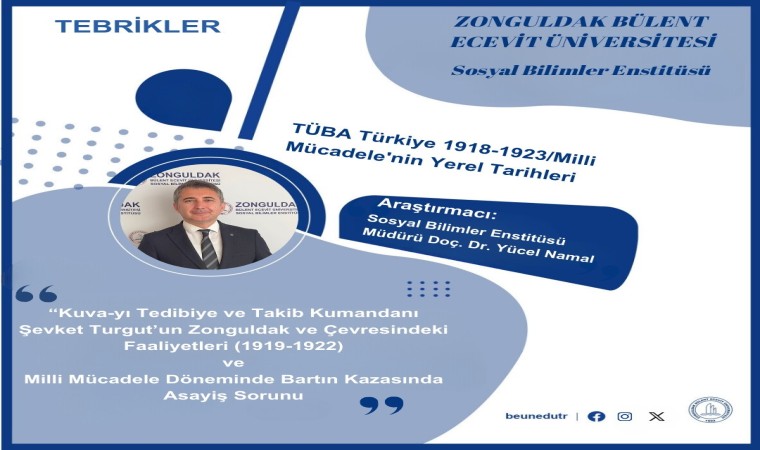 Zonguldak Bülent Ecevit Üniversitesi Sosyal Bilimler Enstitüsü Müdürü Yücel Namal, “Kuva-yı Tedibiye ve Takib Kumandanı Şevket Turgut’un Zonguldak ve Çevresindeki Faaliyetleri (1919-1922)” ve “Milli Mücadele Döneminde Bartın Kazasında Asayiş Sorunu” başlıklı çalışmalarıyla, İnsan ve Toplum Bilimleri Fakültesi Tarih Bölümü Öğretim Üyesi Doç. Dr. Gürbüz Aslan ise “Milli Mücadele’de Zonguldak ve Milli Mücadele’de Bartın” başlıklı çalışmalarıyla TÜBA ve Fatih Sultan Mehmet Vakıf Üniversitesi işbirliği ile yürütülen “Türkiye 1918-1923/Milli Mücadele’nin Yerel Tarihleri” projesinde araştırmacı olarak yer aldı.