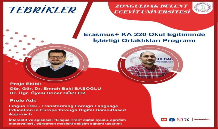 Zonguldak Bülent Ecevit Üniversitesi Erasmus+ KA 220 School Education programı çerçevesinde, İspanya’nın ev sahipliğinde 6 ülkeden toplam 8 partnerle yürütülen "Lingua Trek-Transforming Foreign Language Education in Europe through Digital Game-Based Approach" projesine liderlik ediyor.