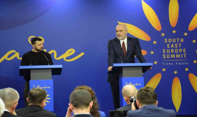 Arnavutluk’un başkenti Tiran’da düzenlenen Ukrayna-Güneydoğu Avrupa Zirvesi sona erdi. Zirvenin ardından tüm katılımcıların yer aldığı aile fotoğrafı çekilirken, Arnavutluk Başbakanı Edi Rama ve Ukrayna Devlet Başkanı Vladimir Zelenskiy ortak basın toplantısı düzenledi. Başbakan Rama yaptığı açıklamada, Zelenskiy’nin sadece bir ülkenin devlet başkanı değil, aynı zamanda bir direnişin lideri olduğunu vurgulayarak, bu zirvenin “neo-emperyalist güce karşı bir araya gelme” amacı taşıdığını ifade etti. Arnavutluk olarak Ukrayna’yı kararlılıkla desteklediğini ifade eden Rama, kalıcı bir barış sağlanana dek bu desteğin devam edeceğini açıkladı.