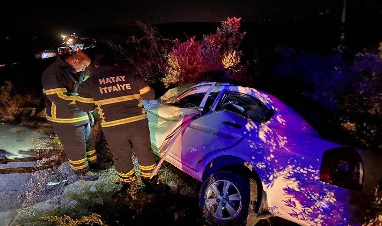 Hatay’da zeytin bahçesine devrilen otomobilin sürücüsü yaralandı.