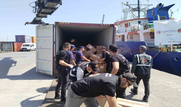İstanbul’un Zeytinburnu açıklarında bulunan bir gemide yapılan aramada, toplam 144 bin 280 paket kaçak sigara ele geçirildi. Kaçak sigaralar bugün Haydarpaşa Limanı’nda basına sergilendi.