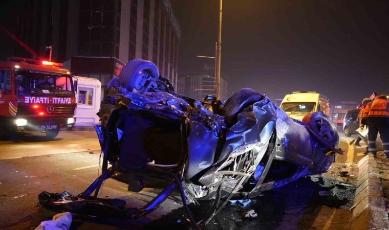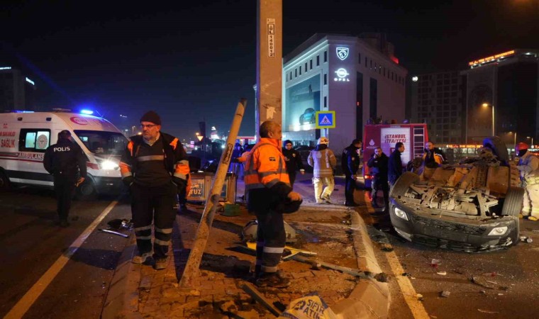 Zeytinburnu E-5 Yanyol’da seyir halindeki otomobile arkadan başka bir otomobil çarptı. Çarpmanın etkisiyle otomobil, refüjü aşarak direğe çarptı. Kaza sonrası ortalık mahşer yerine dönerken 1’i ağır 4 kişi yaralandı.