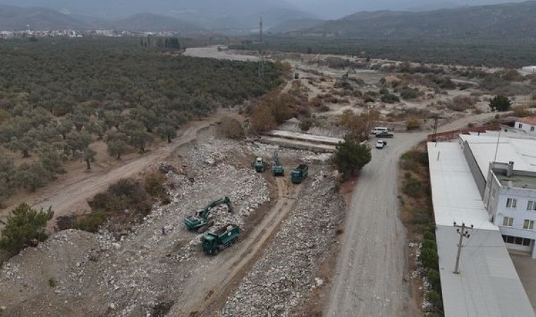 Balıkesir’in Edremit ilçesinde DSİ 25. Bölge Müdürlüğü tarafından Zeytinli Çayı üzerinde bulunan ve taşkın riski oluşturan eski çökmüş köprünün yıkılmasıyla başlatılan ıslah çalışmaları devam ediyor.
