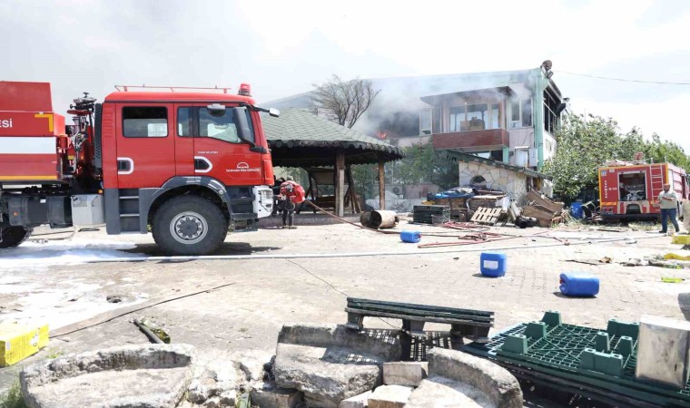 Hatay’ın Antakya ilçesinde bir zeytinyağı fabrikasında çıkan yangına itfaiye ekiplerinin müdahalesi sürüyor. Yangın, büyük ölçüde kontrol altına alındı.