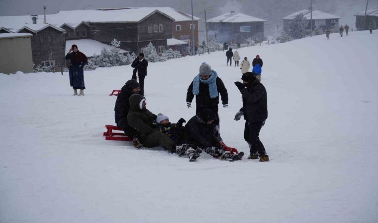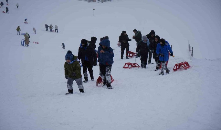 Hem Gümüşhane’ye hem de Trabzon’a 45 dakika mesafede yer alan ve Arap turistlerin de olduğu alanda kimisi kayak kimisi kızak yaparken bazı vatandaşlar da alandaki kar motorlarıyla tur atıyor.