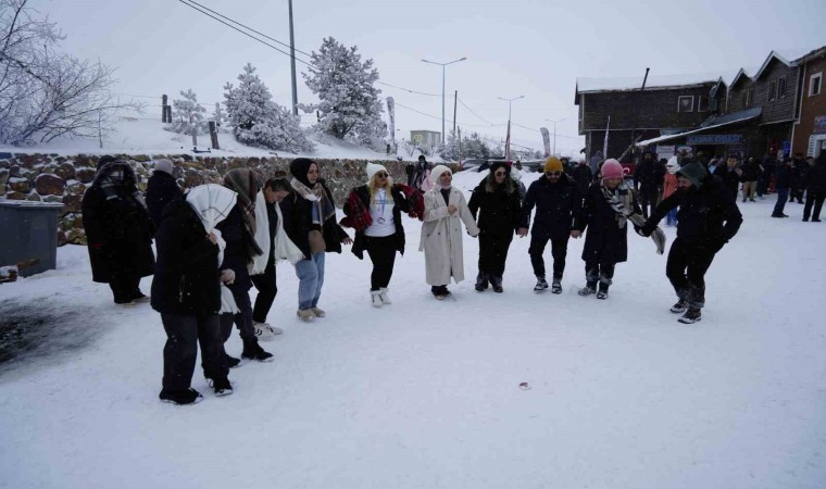 Yanan çoban ateşinin etrafında ısınan, zaman zaman çalan müzik eşliğinde horon oynayan ziyaretçiler eğlence dolu bir gün yaşadı.