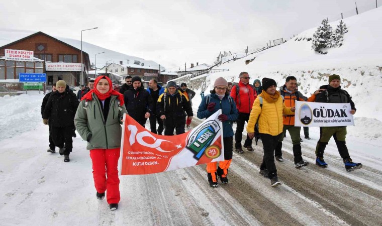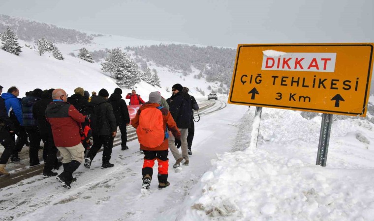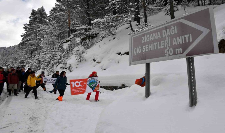 2 bin 50 metre rakımlı Zigana Dağı geçidinden eski Zigana Tüneli karşısında Gümüşhane Valiliği tarafından yaptırılan Çığ Şehitleri Anıtına kadar yürüyen sporcular anıt önüne geldikten sonra saygı duruşunda bulundu ve İstiklal Marşı’nı okudu.