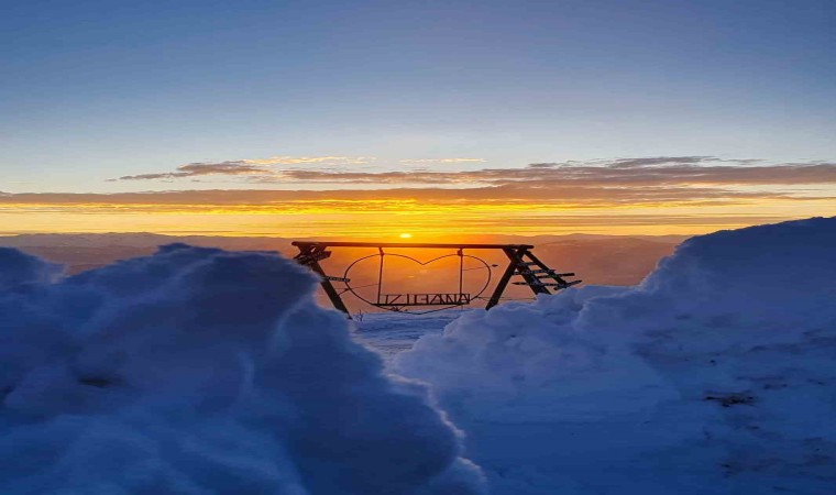 Yağan karla birlikte beyaz gelinliğini giyen ve karın en çok yakıştığı yerlerden birisi olan Zigana Dağı, akşam saatlerinde kış güneşinin ufuk çizgisine inerken gökyüzünü boyadığı muhteşem renklerle bezeniyor.