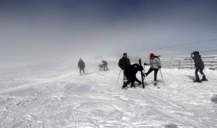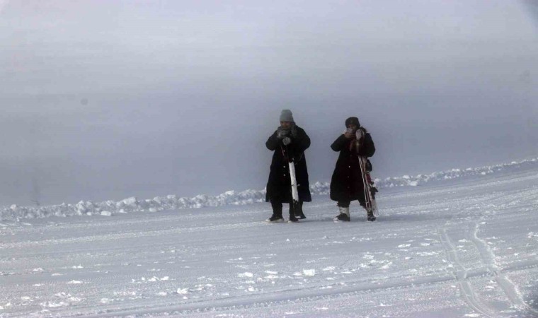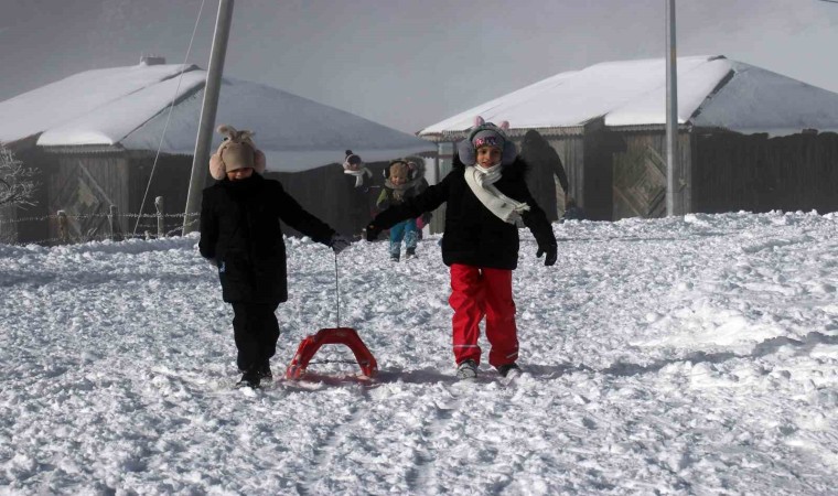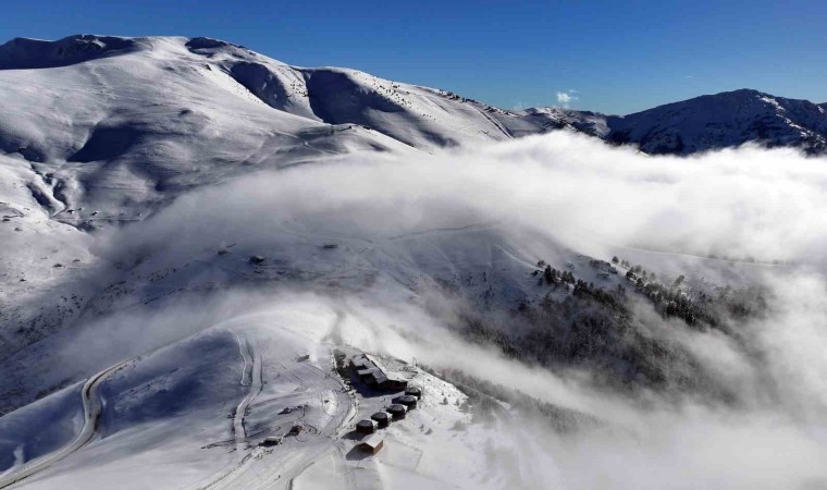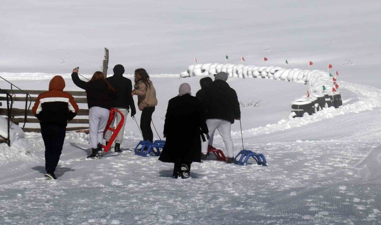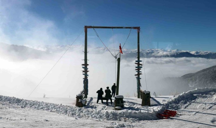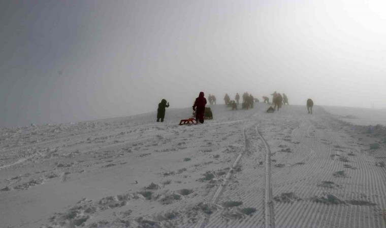 Eşsiz sis manzarası eşliğinde güneşli havada eğlencenin doruk noktasına ulaşan ziyaretçiler hem kızaklarla hem de kayaklarla gönüllerince eğlendi.