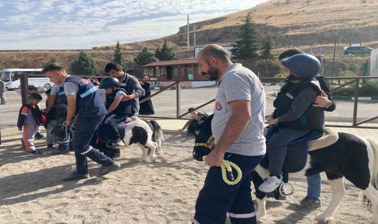 Ankara’da hafif ve orta ağır zihinsel engelli 7 ile 10 yaş arasındaki çocuklar, at eşliğinde terapi (hipoterapi) ile duruş, denge, konsantrasyon, kas kontrolü ve sosyal alanlarda gelişim kaydediyor.