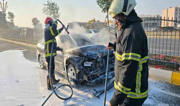 Şanlıurfa’da 4 aracın karıştığı zincirleme trafik kazasında alev alan otomobil yanarak kullanılamaz hale geldi.