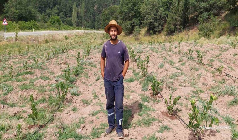 Kütahya’nın Hisarcık ilçesi Güldüren köyünde Ziraat Mühendisi Tunahan Arslan, 7 dekar tarlaya kendi imkanlarıyla bin 400 aronya fidanı dikimi gerçekleştirdi.