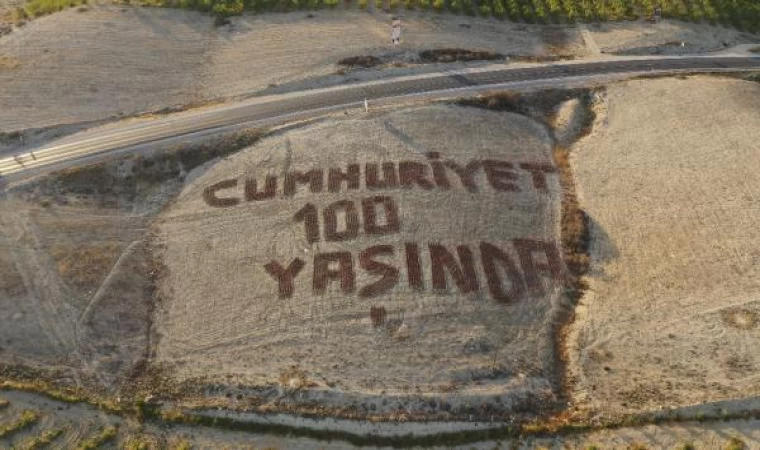 Murat SÖZERİ/MUT (Mersin), (DHA)- MERSİN'in Mut ilçesinde ziraat mühendisi, tarlaya traktörle 'Cumhuriyet 100 yaşında' yazdı.