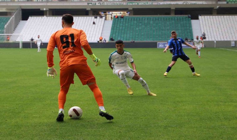 42. dakikada sol taraftan topla birlikte ceza sahasına giren Faruk Can, kale önünde yaptığı ortada, Ahmet Lüftü’nün sert şutunda kaleci Türker meşin yuvarlağı uzaklaştırdı.