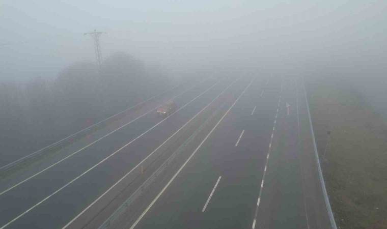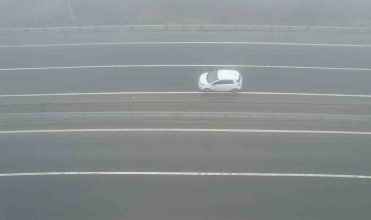 Öte yandan karayolundaki sis dron ile havadan görüntülendi.