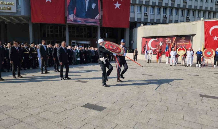 Valilik önündeki tören alanında gerçekleştirilen kutlama töreninde, Atatürk Anıtı önüne Zonguldak Valiliği, Garnizon Komutanlığı ve Belediye Başkanlığı çelenkleri sunuldu.
