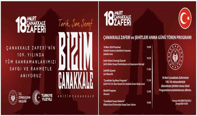 Zonguldak’ta Çanakkale Zaferi’nin 109. yıldönümü dolayısıyla anma programı düzenlenecek.
