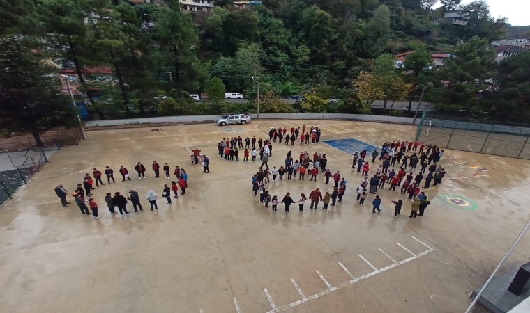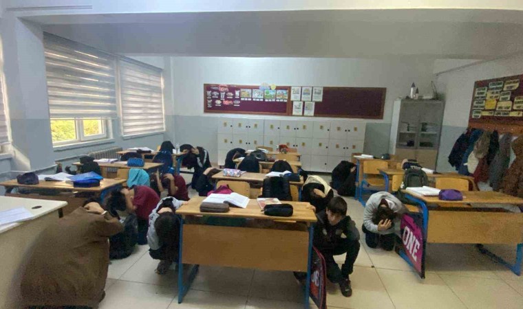 Zonguldak’ta ortaokul öğrencileri deprem ve yangın tatbikatı gerçekleştirdi.