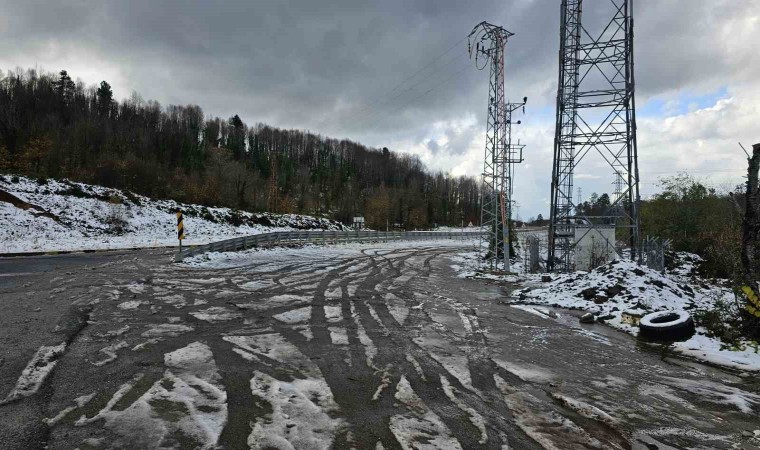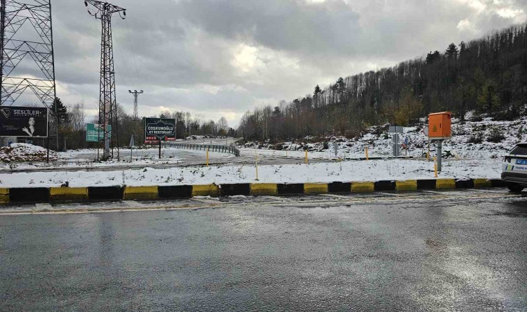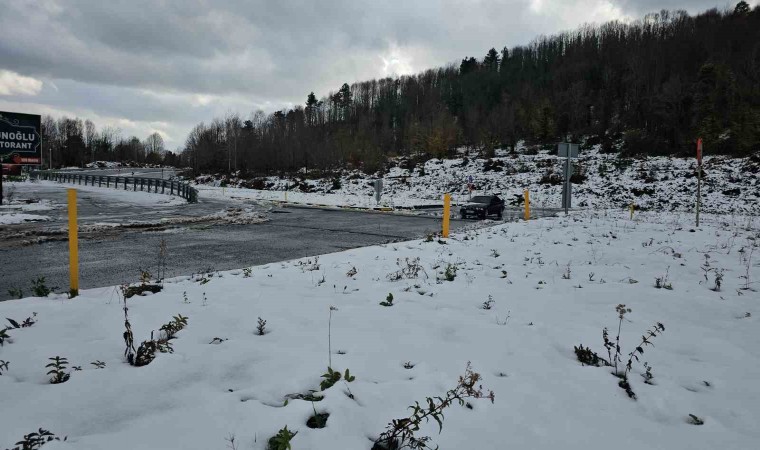 Yaklaşık iki santimetreyi bulan kar sebebiyle kara yolu güzergahı beyaza büründü.