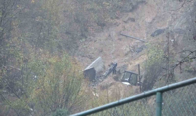 Öte yandan, bölgede çalışma yürüttüğü sırada meydana gelen ikinci heyelanda toprak altında kalan iş makinesi görüntülendi.