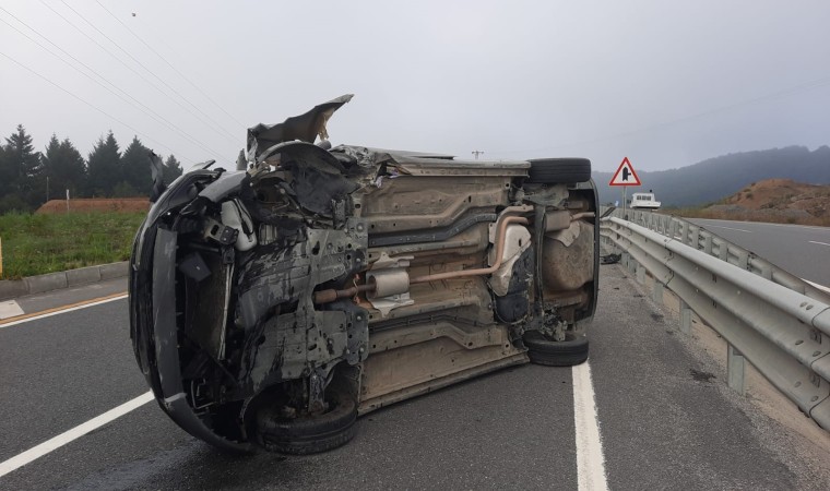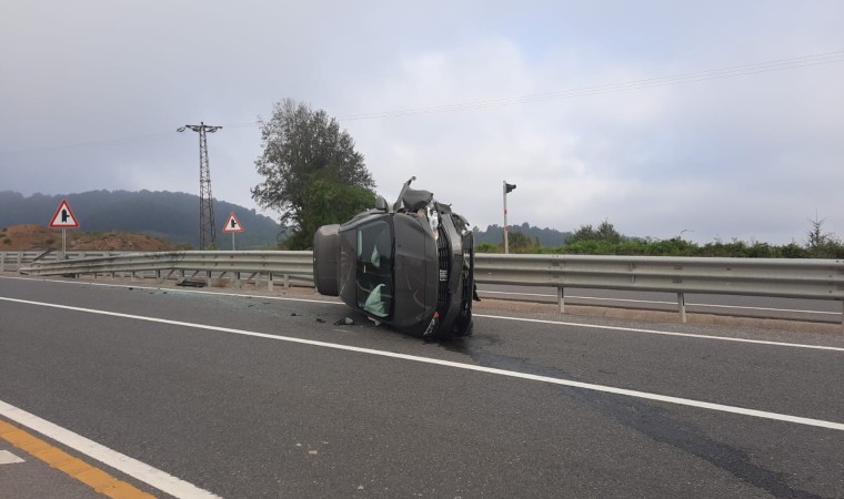 Zonguldak’ta kontrolden çıkan otomobilin refüje çarpıp yan yatması sonucu 2 kişi yaralandı.