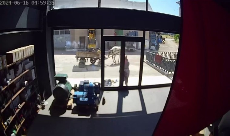Bursa’da at arabası ile geldikleri dükkandan kablo çalan hırsızlar güvenlik kamerasına yansıdı. Hırsızların rahat tavırları dikkat çekti.