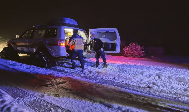 Bolu’da gece saatlerinde yoğun kar yağışı nedeniyle yüksek kesimlerde ulaşım olumsuz etkilendi. Kar kalınlığının yaklaşık olarak 50 santimetreye ulaştığı Gerede ilçesinin Demircisopran köyünde 72 yaşındaki tansiyon hastası bir vatandaş rahatsızlandı. Hastalanan vatandaşın ailesi tarafından durum 112 Acil Çağrı Merkezi’ne bildirildi. Ulaşımın zor sağlandığı ve kar yağışının yoğun şekilde etkili olduğu köye sağlık ekipleri paletli ambulans ile kısa süre içerisinde ulaştı. Köyde ambulansta ilk müdahalesi yapılan 72 yaşındaki vatandaş, ambulans ile zorlu şartlarda hastaneye götürüldü.