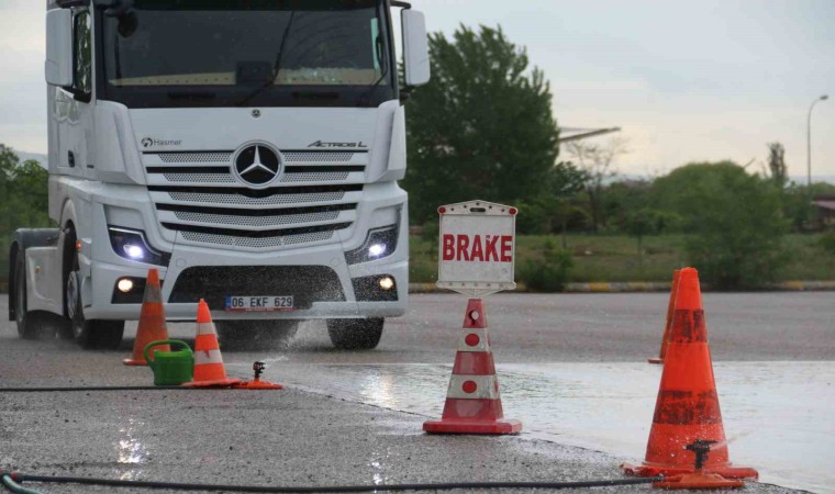 Kursiyerlere teorik ve garaj eğitimlerinden tır ileri sürüş tekniklerine kadar birçok konuda eğitim verdiklerini belirten ileri sürüş teknikleri ve yol güvenlik uzmanı Fatih Levent Alpay, “Biz buraya hiçbir şey bilmeyen yani tıra nasıl binilirden başlıyoruz tırdan nasıl inilire kadar her şeyi öğretiyoruz. Hiçbir şey bilmeden buraya gelen bir arkadaş buradan tam donanımlı defansif sürüş, gece sürüşü, yorgunlukla mücadele ve ekonomik sürüş teknikleri eğitimlerini alarak aynı zamanda burada da gördüğünüz gibi anti-skid eğitimlerimizi de tamamlayarak arkadaşları kendi şirket bünyemizde istihdam ediyoruz. Kendi filomuzdaki sürücülerimizin yeterli sayıya ulaştıktan sonra da bir sonraki amacımız piyasada hizmet veren diğer şirketlere ve şahıslara da bu eğitimi sunacağız” ifadelerini kullandı.