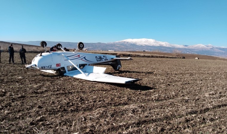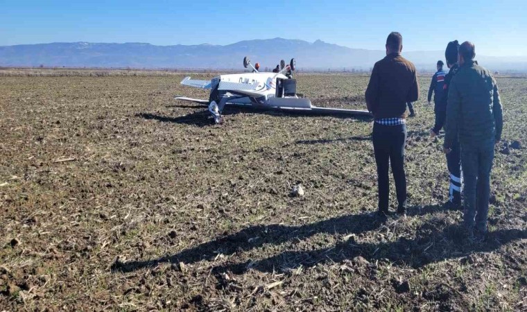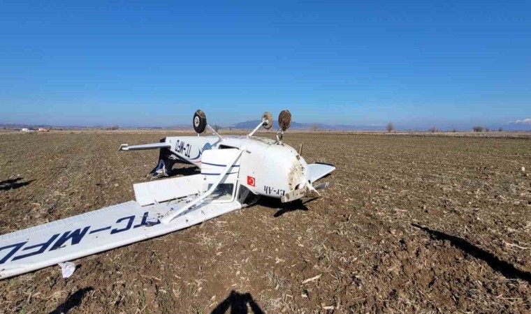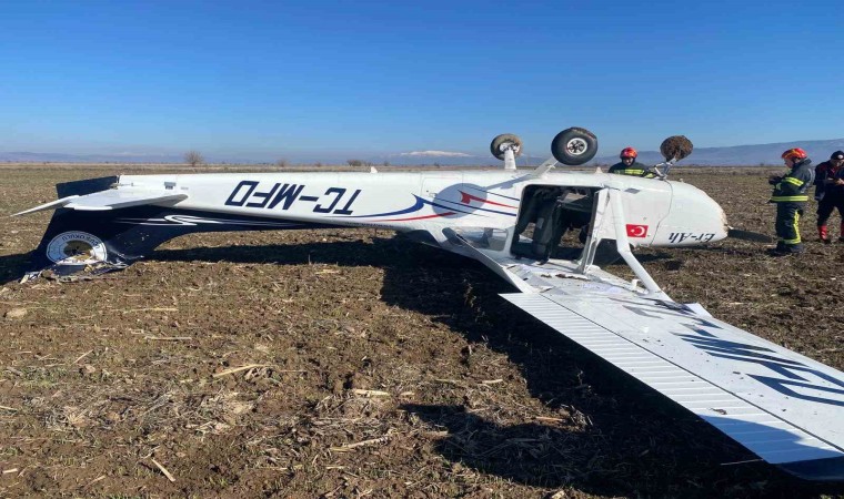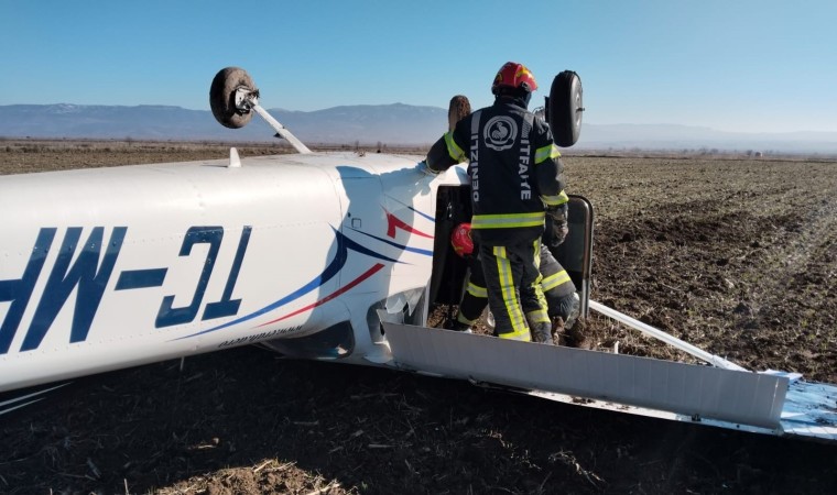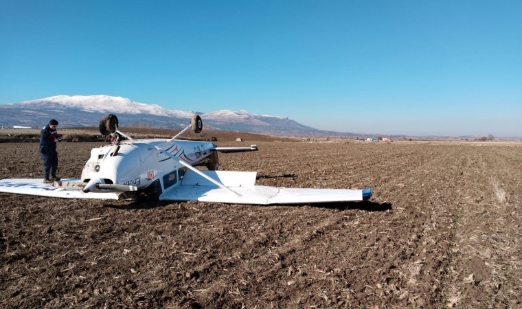 Isparta’dan havalanan eğitim uçağı, Denizli’nin Çal ilçesine bağlı İsabey Mahallesi’ne sert iniş yaptı. Tarlaya ters bir şekilde düşen uçağın pilotu yaralandı.