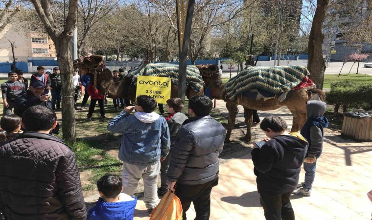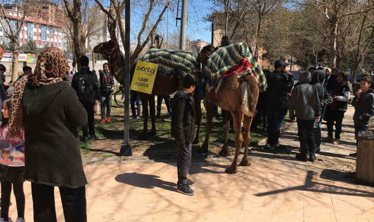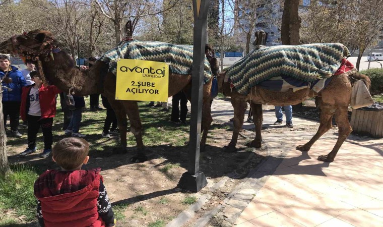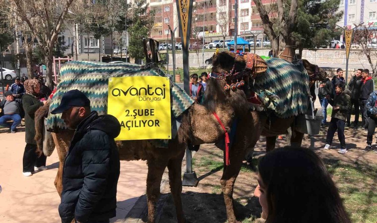 Reklam afişleri ile donatılan deve ve atlar, kent merkezinde işlek cadde ve sokaklarda gezdirilerek tanıtım ve açılış duyurusu yapılıyor. Deve kervanı ile karşılaşan vatandaşlar şaşkınlıklarını gizleyemedi.